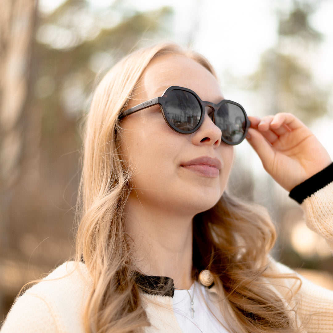 Puu kehysten materiaalina ei ainoastaan tee jokaisesta aurinkolasiparista ainutlaatuista luonnollisten kuvioidensa vuoksi, vaan myös tarjoaa kauniita luonnon sävyjä täydentämään lookiasi!
