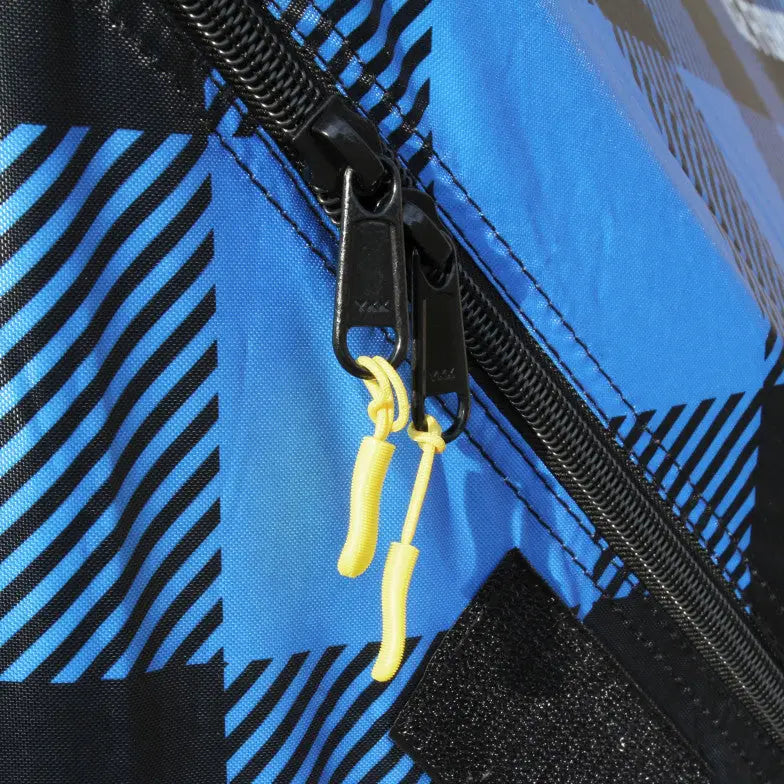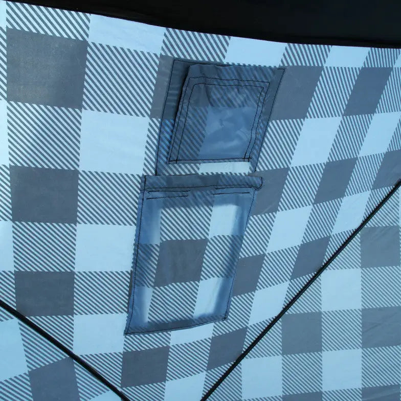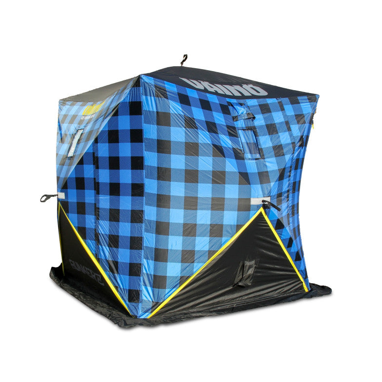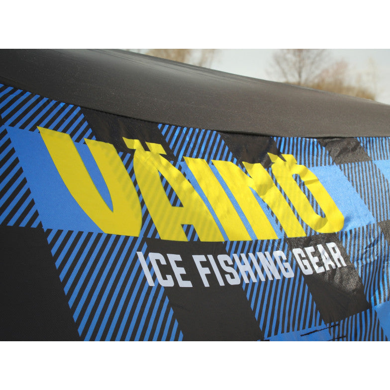 Väinö Bunker 3 has gotten a fresh look for the 2025-2026 season. This new pattern's been described as like a flannel shirt or Reijo style. Besides the style, the tent's new coloring considers safety on the ice - it has small reflective details and bright yellow color that makes the tent easy to spot and visible from afar on the ice.