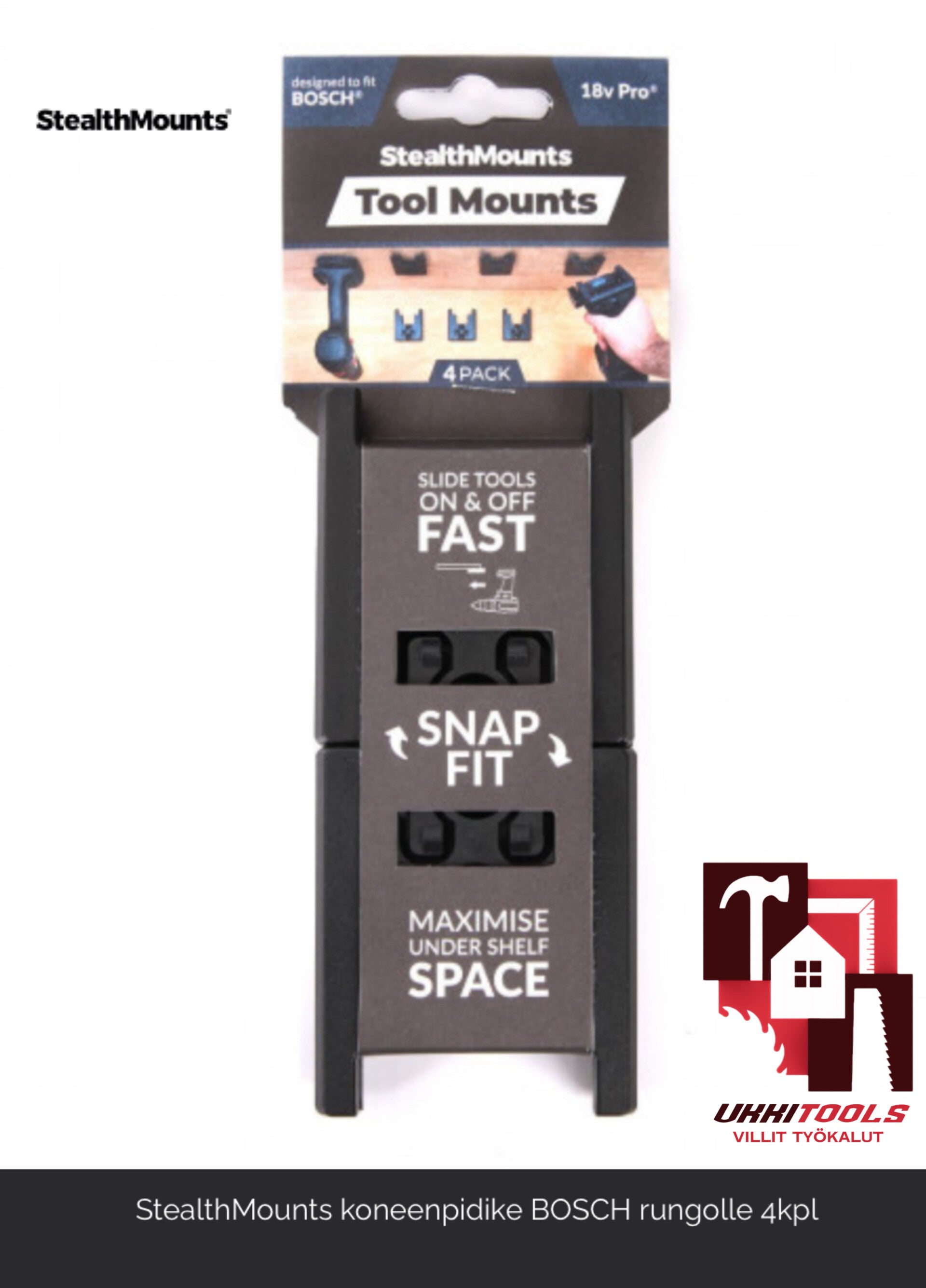 StealthMounts koneen pidikkeet on suunniteltu tunnetuimpien ja käytetyimpien akkutyökalujen rungoille. Pidä