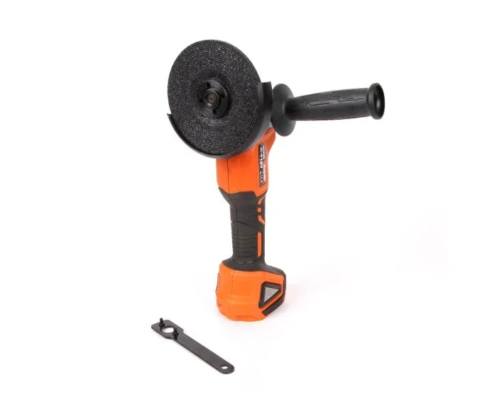 Robota akkukulmahiomakone metallin ja kiven leikkaamiseen ja hiomiseen. Hyvin käteensopiva kumipinnoitettu kädensija.