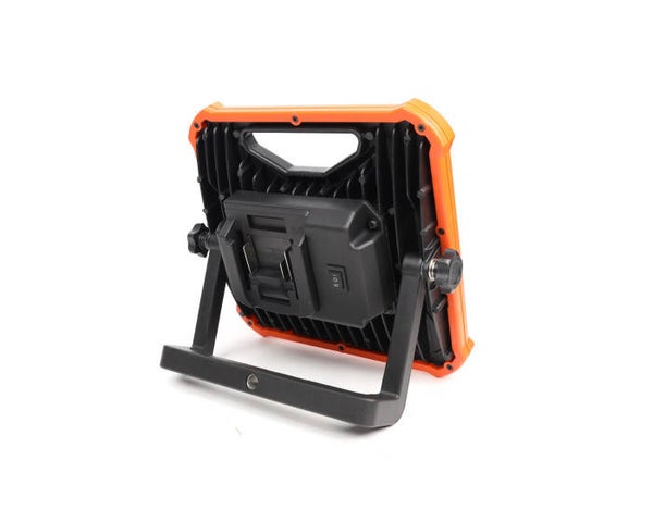 Robotan akkukäyttöinen työvalo yhdellä suurella COB teho ledillä. Valaisimen takana on säädettävä tuki, jolla valaisin pysyy pystyssä haluamassasi kulmassa. Kaksi tehoaluetta 1500LUM ja 2500LUM. Ei sisällä akkua eikä laturia. Toimii Robotan 18V akulla. (min. 2.0Ah). Toimii myös Makita akulla.