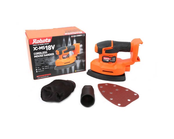 Robotan akkukäyttöinen hiomakone tuottaa siistin ja tasaisen jäljen hiotulle pinnalle. Hiomakoneen käyttö on helppoa ja tehokasta.